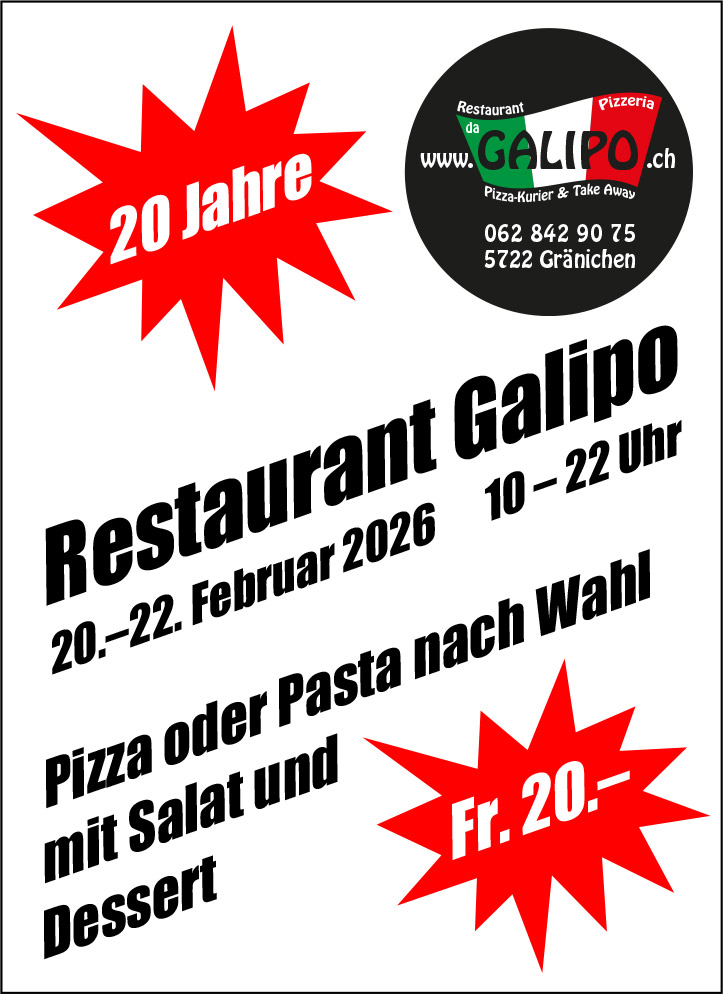 Pizza Galipo 50cmMozzarella, Speck, Peperoni, Knoblauch, Zwiebeln, scharfer Salami, Peperoncini46.00 CHF -